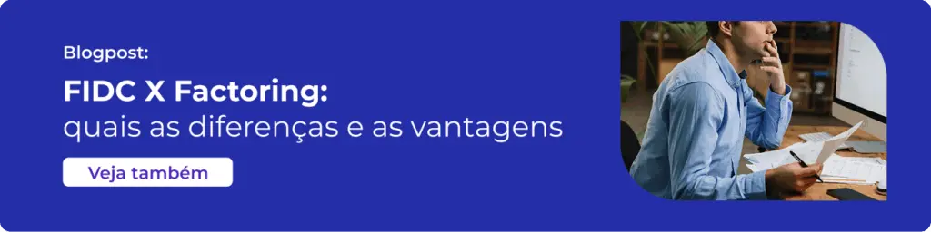 Além disso, fomos uma das pioneiras na área de fomento mercantil e hoje atuamos no desconto de recebíveis tanto no segmento de Factoring(fomento mercantil) quanto no de FIDCs, através de seu fundo de investimento.